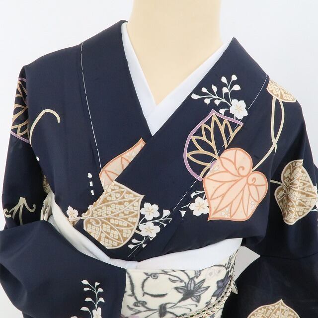 新品未使用・撮影の為だけに着付けた一枚、仕付け糸付“手縫い仕立て”のお品でございます。