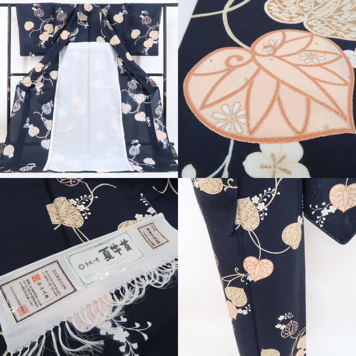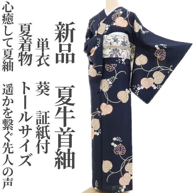 新品 単衣 夏着物 葵 証紙付“心癒して夏紬…遥かを繋ぐ先人の声”仕付け糸付 正絹 トールサイズ 夏牛首紬 3414