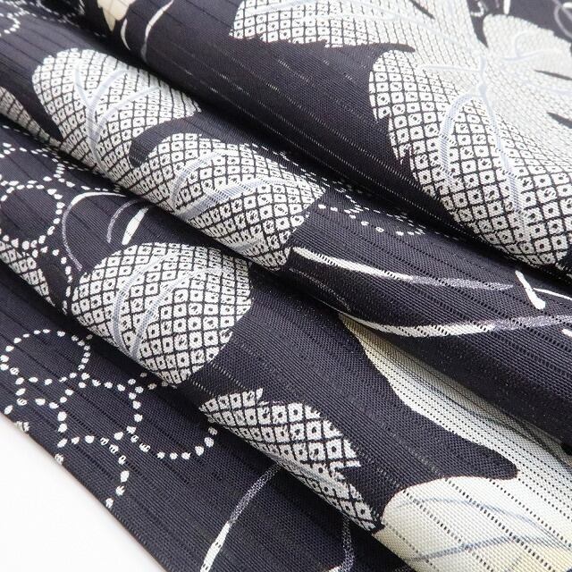 絽は、二本の経糸を捩りながら緯糸を織り込んだもじり織で、盛夏のお着物として涼しげでさらりとした雰囲気に生地質で着る方にもまた、見る方にも清らかな風を感じるような涼しさを届けてくれます。透け感あふれる風合いは、重なるお着物の存在をそっと感じさせながら涼やかな雰囲気をより演出し、時にはお着物の違う表情を引き出します。