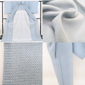 一見するとシンプルに構える浅縹色の夏の空、雲のないそのまっさら心に触れると、横縞のように広がる透け感、品よく微笑む菊が静かに浮かび上がり、その裏側に広がる江戸小紋三役の一つ行儀と共に繊細で優美な美しさを解く、“絽”両面染め夏着物正絹仕付け糸付江戸小紋でございます。