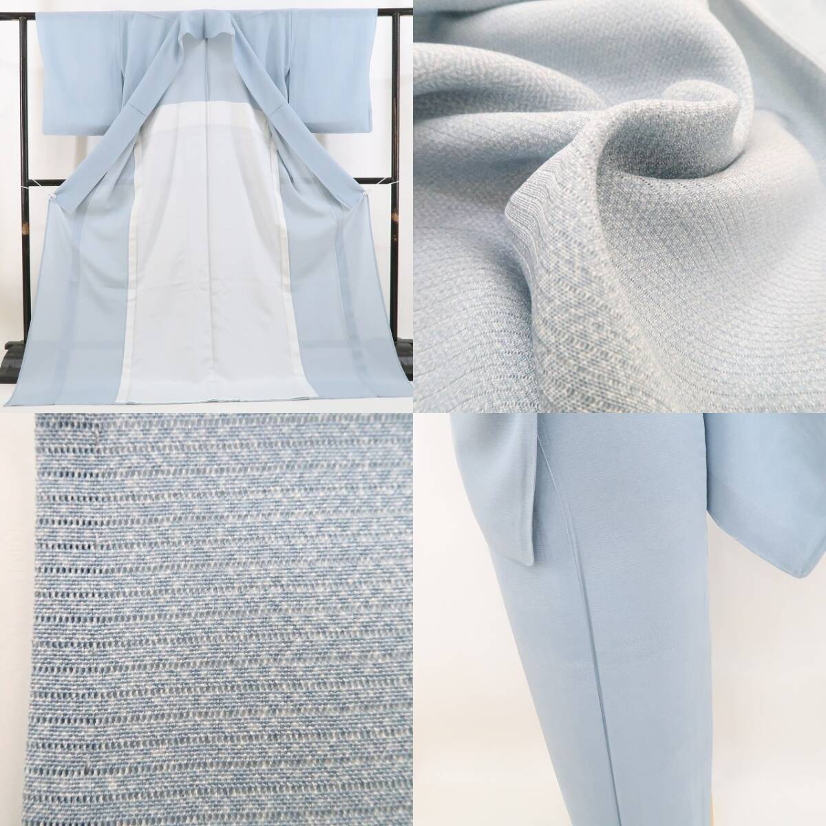 縦・横の糸の本数を減らして隙間を作り、風通しを良くした“絽”は、透ける部分が横縞になって表れる“絽目”が特徴で涼しげでさらりとした雰囲気に生地質を持ちます。7月、8月の盛夏に最適で、まだまだ気温の高い9月頃まで着られる薄物着物の代表格。