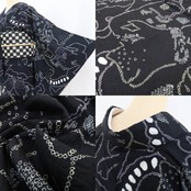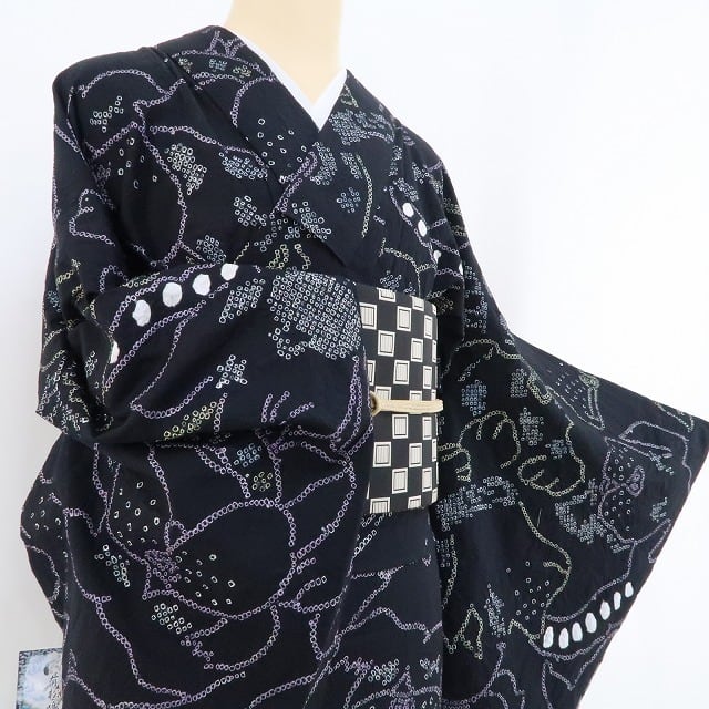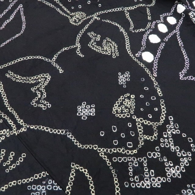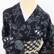 シックな黒の色地に絞り鹿の子で描き込まれた愛らしいワンコのデザインモチーフ、お道化た表情が醸し出すえも言われぬお洒落感、それは高級浴衣に込められた今をときめく夏の色艶、人気ブランド浴衣のひと品…受け継がれる“有松鳴海”の伝統技が創り出す活き活きとした表情は“見事”のひと言です。