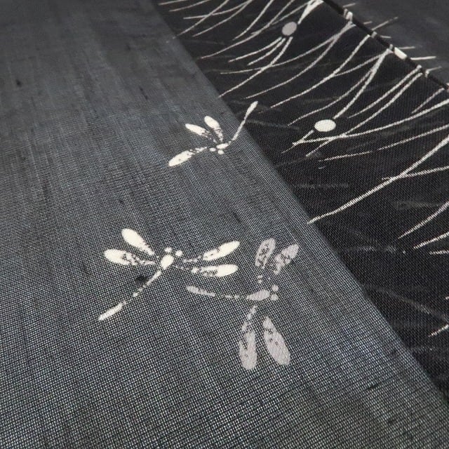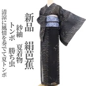 夏の風物“蜻蛉/勝ち虫”を題材にしたひと品、涼感豊かな夏着物…紗紬の絹芭蕉でございます。