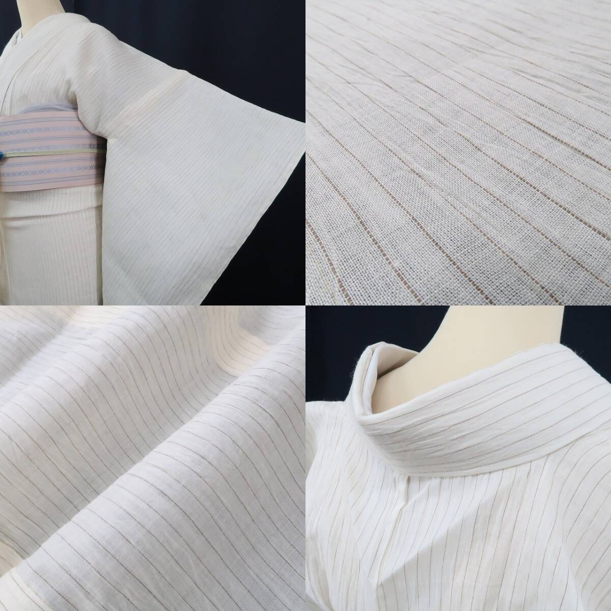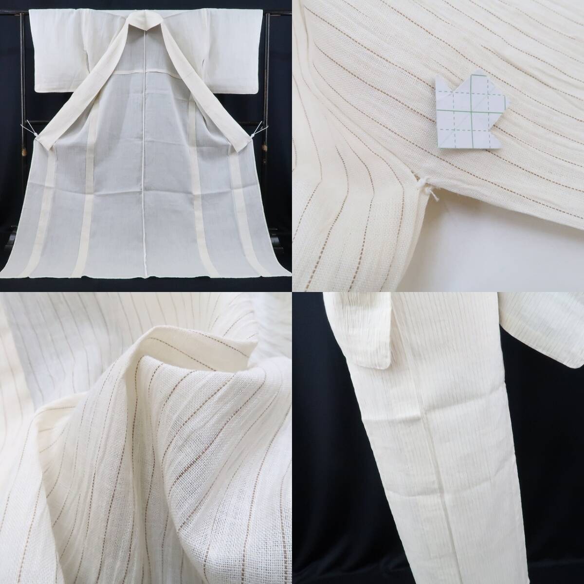 未着用 麻 洗える夏着物 縦縞“不変を紡いで洒落味を楽しむいつもの夏の贈り物”仕付け糸付 トールサイズ 小千谷縮3575