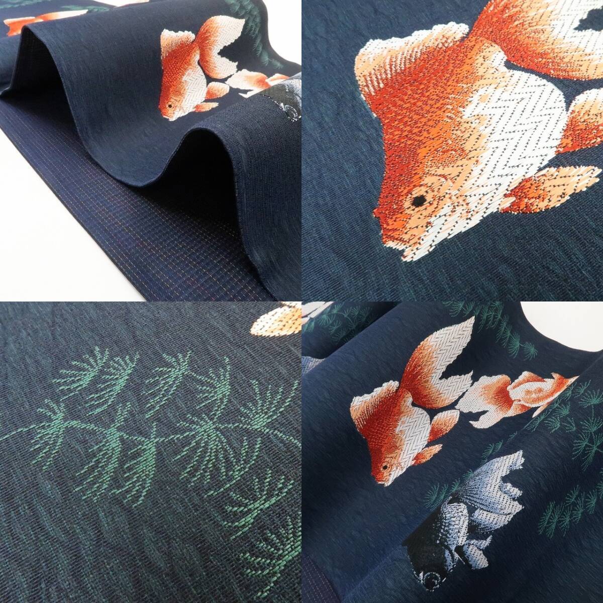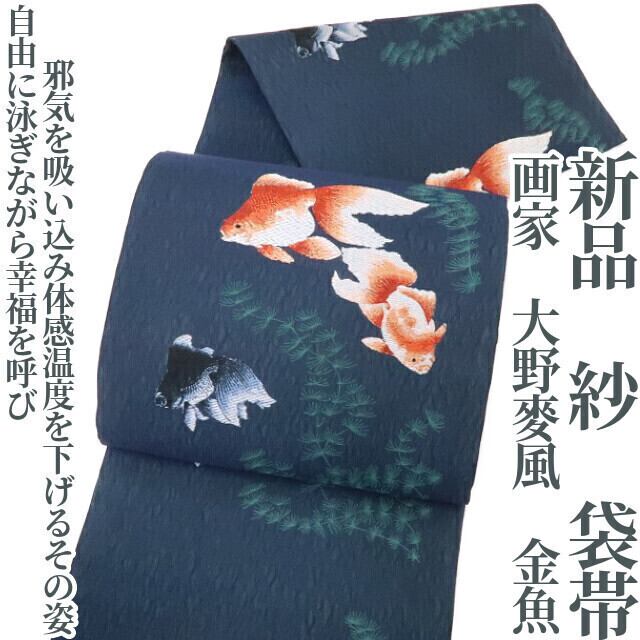新品 紗 画家 大野麥風 金魚 夏着物 正絹“自由に泳ぎながら幸福を呼び邪気を吸い込み、体感温度を下げるその姿”袋帯 3613