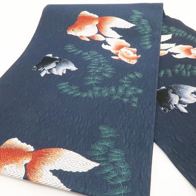 見れば見るほど引き込まれる、“紗”画家「大野麥風」金魚 夏着物正絹袋帯でございます。