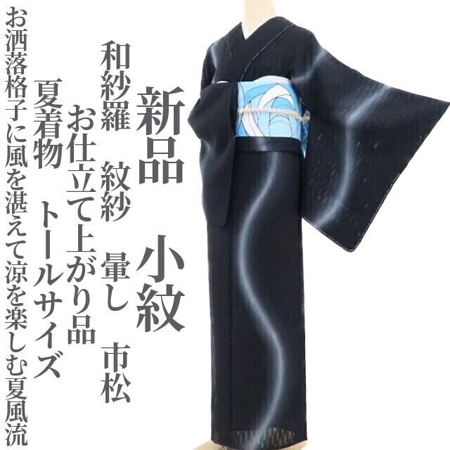 新品 和紗羅 紋紗 暈し 市松 夏着物“お洒落格子に涼を楽しむ夏風流”仕付け糸付 お仕立て上がり品 トールサイズ 小紋 3631