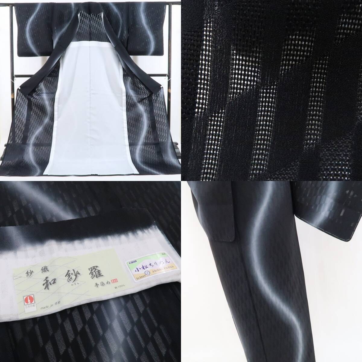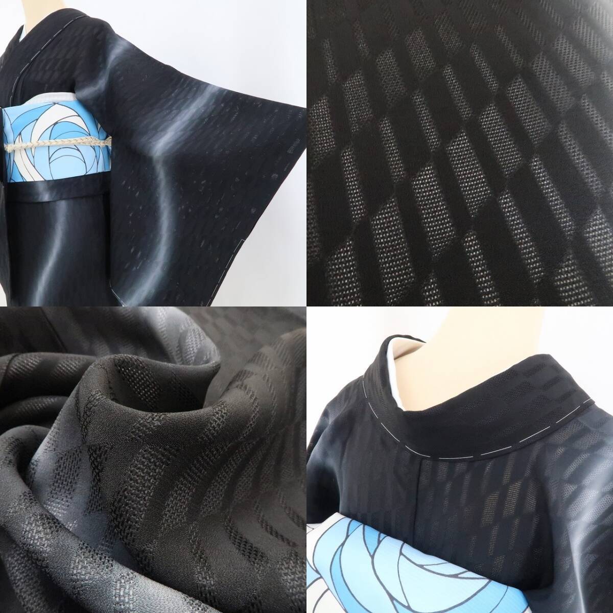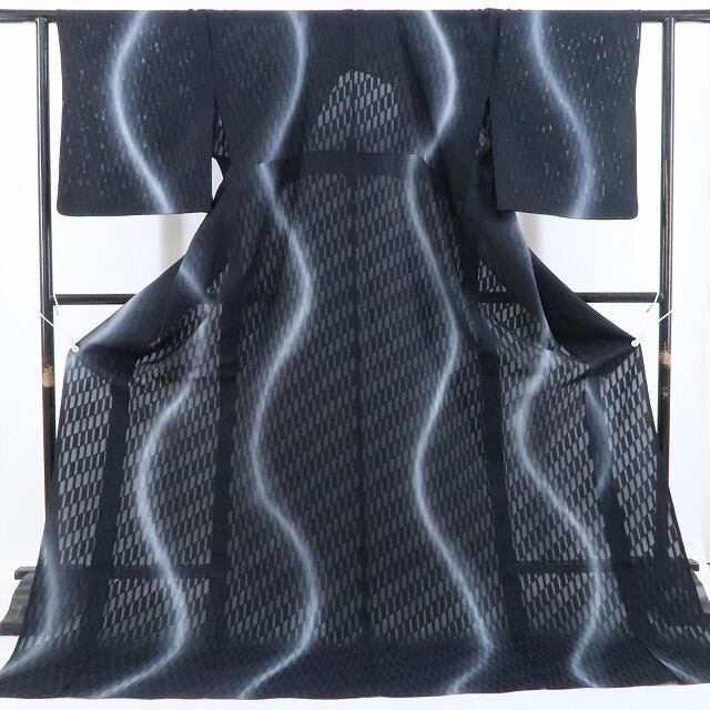 シックな黒の色地を抜ける涼やかな風、巧みな構図で濃淡刻む崩れ市松の洒落模様、紗の透明感に醸し出されるえも言われぬお洒落感は必見!それは正に視線を射止める“ひと味違う小粋なセンス”、お奨めです。