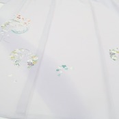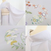 薄物着物の代表格“絽”のお着物は、二本の経糸を捩りながら緯糸を織り込んだもじり織で、盛夏のお着物として涼しげでさらりとした雰囲気に生地質。袖を通す貴女、またその姿を目にする周りの皆にも清らかな風を吹かせるように涼を届けてくれます。これから迎える7月、8月の盛夏に満開を迎え、近年まだまだ気温の高い初秋頃まで咲き誇ります。