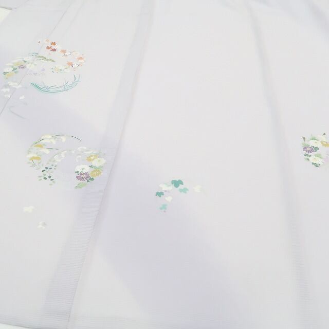 静かに晴れ間を見せながら目にも涼し気に広がる夏霧に目にも楽しげな表情と色付きの松や菊、桜や梅、蘭、紅葉や藤、蔦、そして流水に方輪車文が懐かしい風情を漂わせながら歓び溢れる和をつくり、ふわりと舞い上がりいつの間にか夏霧も涼やかな風も水も味方にいつの間にか晴れ空を花開く、“絽”坪金 花丸紋 夏着物 お仕立て上がり品 トールサイズ 仕付け糸付訪問着でございます。