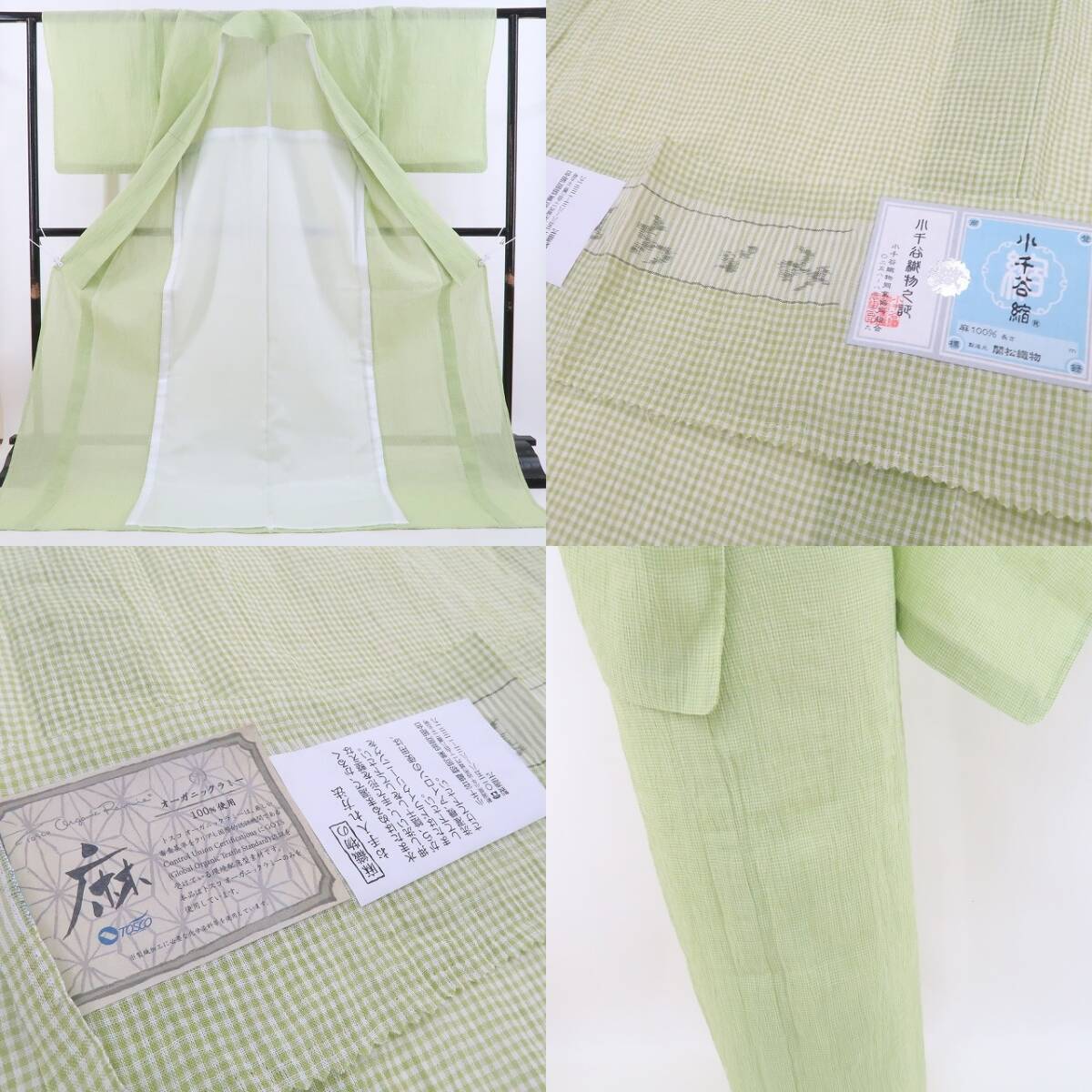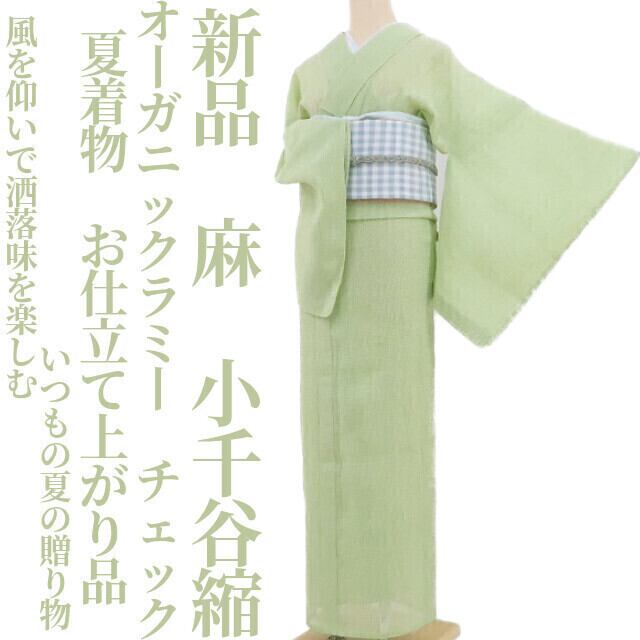 新品 オーガニックラミー 麻 チェック“洒落味を楽しむいつもの夏の贈り物”夏着物 お仕立て上がり品 仕付け糸付 小千谷縮 3677