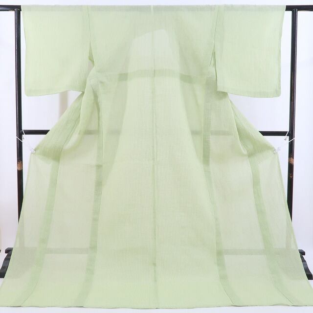 “縮に広がる“オーガニックラミーの自然な味わい”、涼感豊かな夏着物…麻素材/トールサイズの素敵な小千谷縮、お仕立て上がり品でございます。