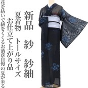 新品 紗 夏着物 お仕立て上がり品“花を紡いで絣をくくるお洒落自慢の夏が来る”トールサイズ 仕付け糸付 紗紬 3719