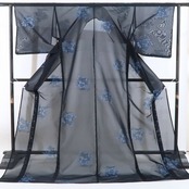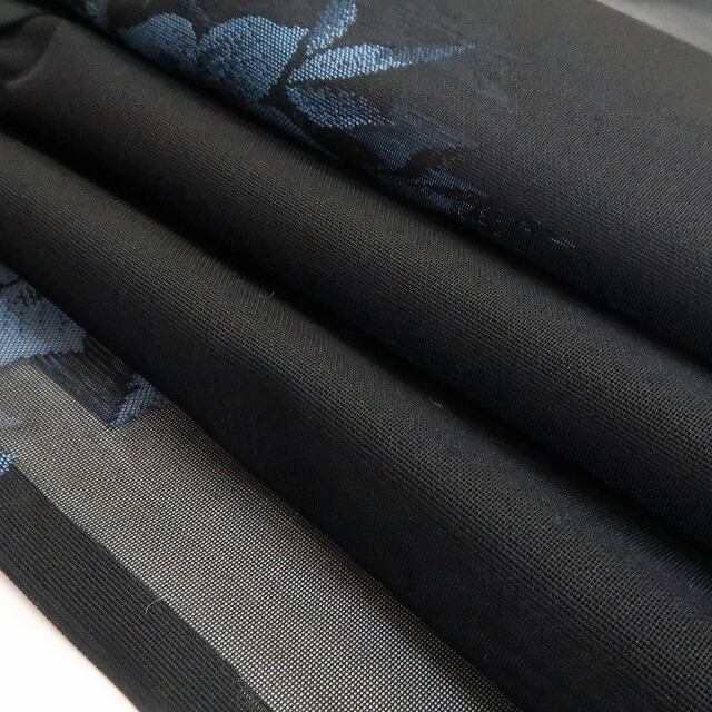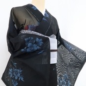 藍鉄色の地が放つどこか大人びた表情、紗の透明感に艶めいて浮かび上がる可憐な夏花のデザインモチーフ、それは正に紬紗の清々しさに込められた夏着物の魅力そのもの…シンプルにそしてダイレクトに夏和装の愉しみ方を届けてくれることでしょう。