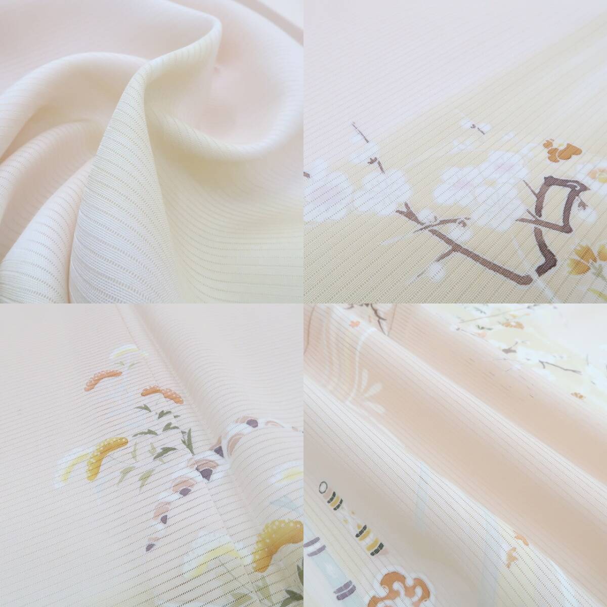 昨今、夏に和装をされる方が少なくなり希少なものとなりつつある絽のお着物は、二本の経糸を捩りながら緯糸を織り込んだもじり織で、盛夏のお召し物としてさらりとした生地質が魅力、着る方にもまた見る方にも清らかな風を感じるような涼しさを届けてくれます。