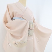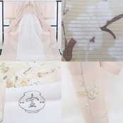 灰桜色の優彩が趣く楚々とした表情、絽の透明感に柔らかな艶を放つ花と和柄のデザインモチーフ、それは丸みのフォルムに醸し出される慎ましき夏の華やぎ、着物の奥行を楽しむ日本人の美意識が活きたひと品、正に夏着物ならではの魅力が艶色豊かにに表現されています。