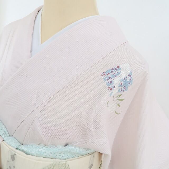 こちらのお着物は、居敷当て付の高級仕立てとなっております。お座りになられました時など薄手着物特有のよれを低減し、また下にお召になられましたものの透けを防止する効果もございます。