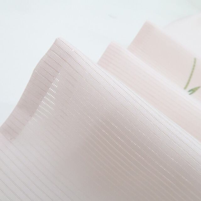 昨今、夏に和装をされる方が少なくなり希少なものとなりつつある絽のお着物は、二本の経糸を捩りながら緯糸を織り込んだもじり織で、盛夏のお召し物としてさらりとした生地質が魅力、着る方にもまた見る方にも清らかな風を感じるような涼しさを届けてくれます。