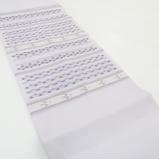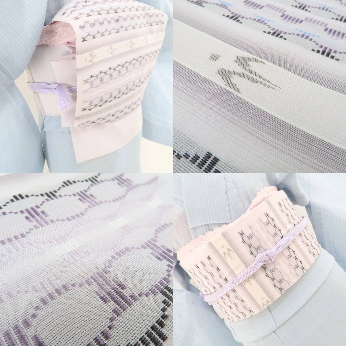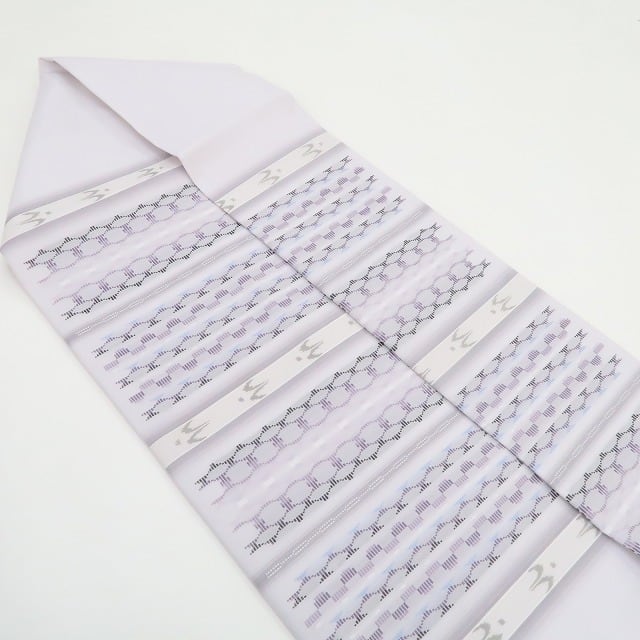 薄葡萄色×多彩に開く一面は、まるで心地よく酔うような夢心地に淡い光を帯びてふっくら浮き立ち、此処だけの流星群へと誘うトゥイグワーが群れ飛び、見る者をその世界へと引き寄せ夢中にさせる、“南風原花織”夏着物正絹証紙付なごや帯でございます。