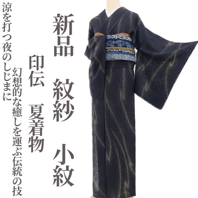 新品 紋紗 印伝 夏着物 正絹 仕付け糸付“涼を打つ夜のしじまに幻想的な癒しを運ぶ伝統の技”小紋 3789