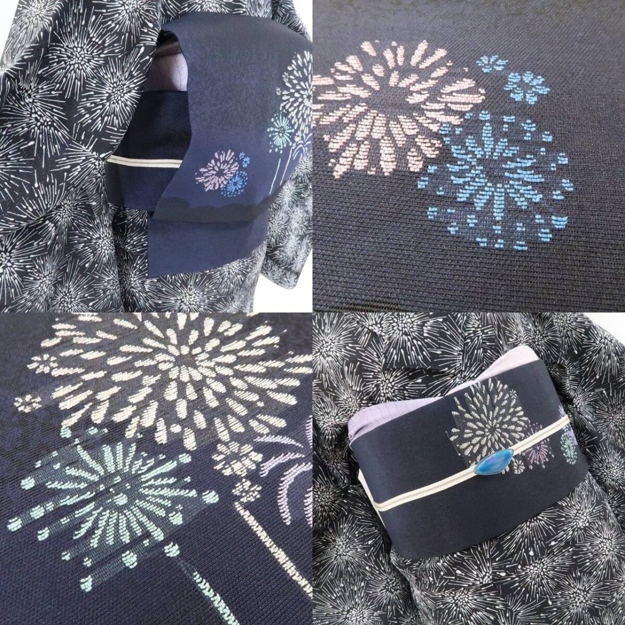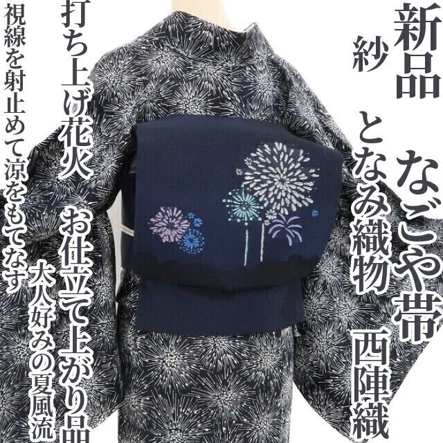 新品 となみ織物 打ち上げ花火 紗 夏着物“涼をもてなす大人好みの夏風流”正絹 お仕立て上がり品 西陣織 なごや帯 3803