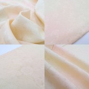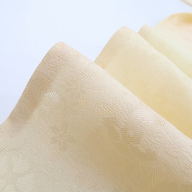 丸みを帯びた女郎花色と薄香色の濃淡に深みを映す和の奥行、精微な早雲寺文台裂の柄文様が繰り広げる歴史を秘めた夢世界、それは龍村の計り知れないデザイン力が創り出す“逸品小紋”の新たな未来、見事です。