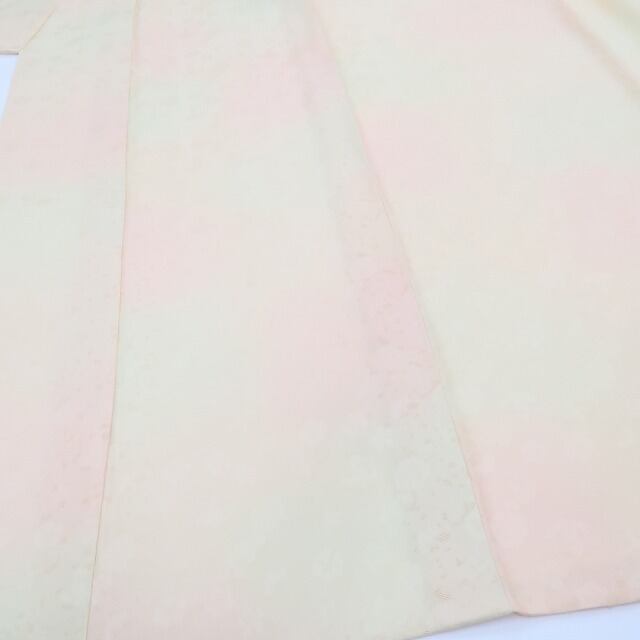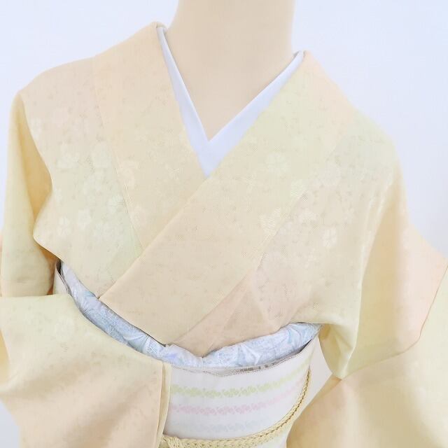 こちらのお着物は、居敷当て付の高級仕立てとなっております。お座りになられました時など薄手着物特有のよれを低減し、また下にお召になられましたものの透けを防止する効果もございます。