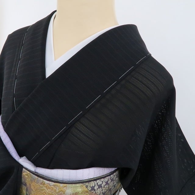 昨今、夏に和装をされる方が少なくなり希少なものとなりつつある絽のお着物は、二本の経糸を捩りながら緯糸を織り込んだもじり織で、盛夏のお召し物として涼しげでさらりとした生地質が魅力、着る方にもまた見る方にも清らかな風を感じるような涼しさを届けてくれます。