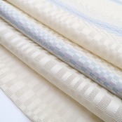 紗は二本の経糸で緯糸一本ずつをからめて織り上げたシンプルなもじり織で絽以上に透け感があり、カジュアルからセミフォーマルまで幅広く着られる夏生地のひとつ、織り柄のある紋紗、紬糸を使った紬紗などがあります。