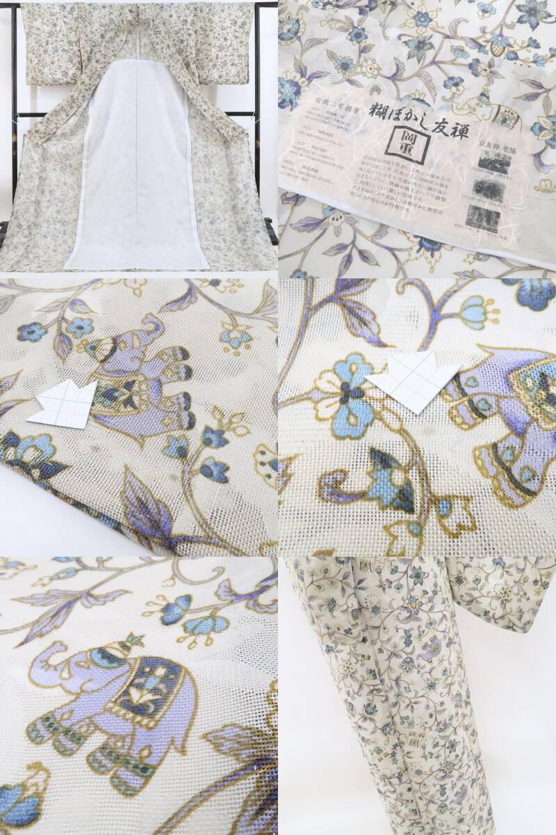 新品 岡重 紋紗 お仕立て上がり品 象更紗 夏着物 仕付け糸付 トールサイズ“懐かしさを感じる唐花と象の更紗の風”小紋 3901