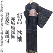 上州赤城に伝わる手引きの技、それは“不変を紡ぐ赤城の伝統”、涼感豊かな夏着物…赤城座繰織の紗紬、証紙付のお品でございます。