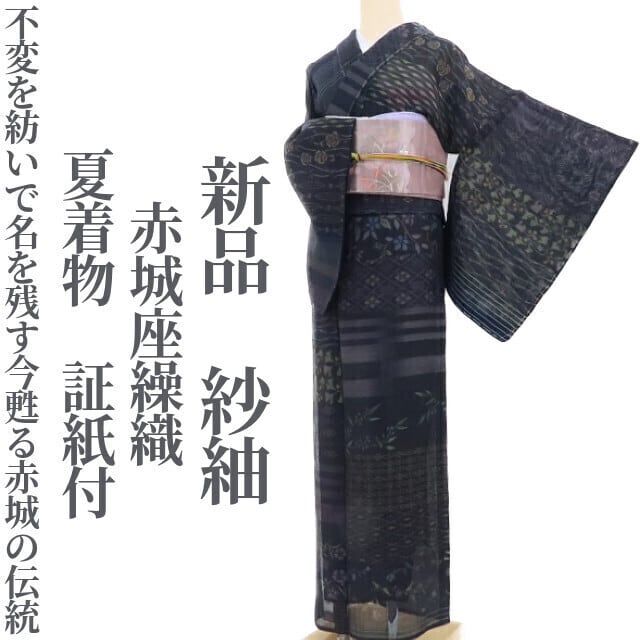 新品 夏着物 正絹 証紙付“不変を紡いで名を残す今甦る赤城の伝統”仕付け糸付 赤城座繰織 紗紬 3925