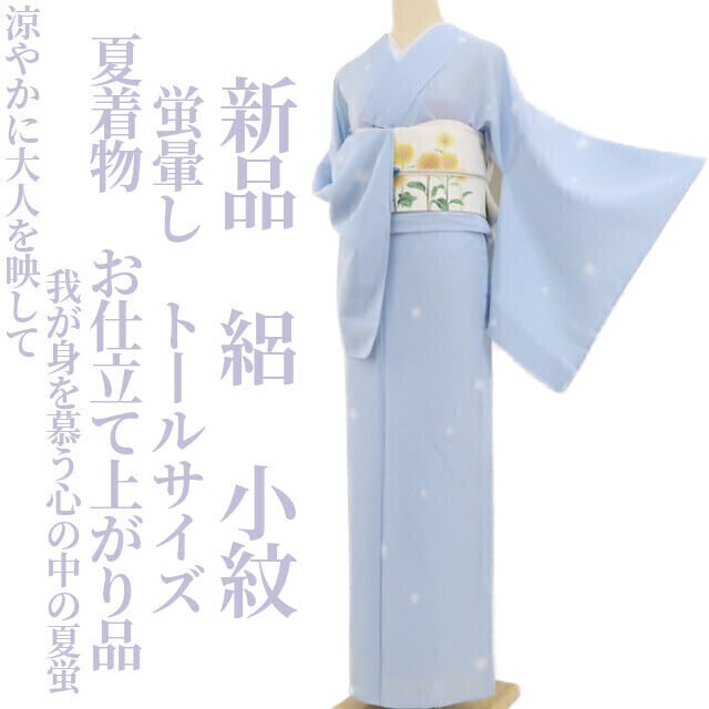 新品 絽 蛍暈し 夏着物 お仕立て上がり品“涼やかに大人を映して我が身を慕う心の中の夏蛍”仕付け糸付 トールサイズ 小紋 3929