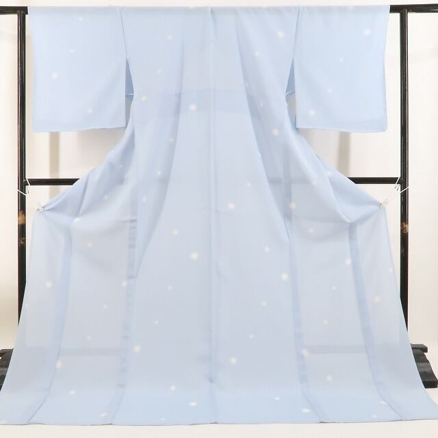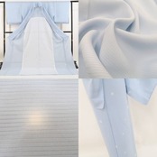 勿忘草色の彩りが醸し出すいとも柔らかな表情、涼やかな絽の透明感に和へと誘う蛍暈しの夏風情、“さりげない美しさ”を魅せる夏着物の一枚、“和に癒される涼の出で立ち”をあなたのお手元へ。