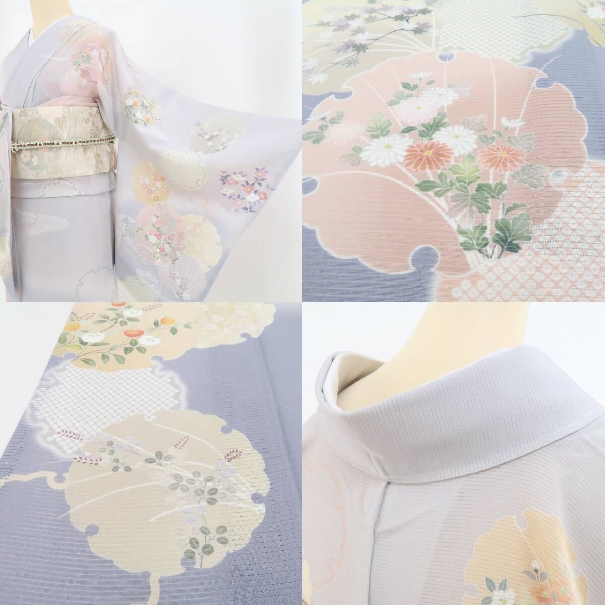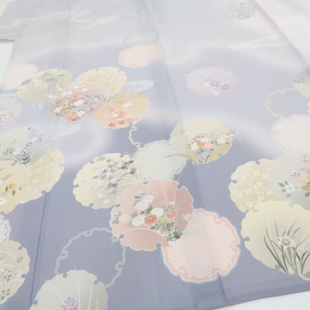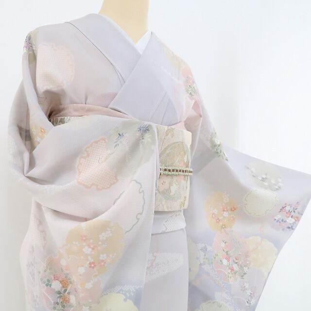 柔らかな暁鼠色が趣く夏色の表情、絽の透明感に描き込まれた花を湛える雪輪の風情、意匠が創り出すえも言われぬお洒落感は必見!それは創作着物に秘められた“この上ない夏のきらめき”、お奨めです。