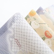雪輪は、雪の結晶の輪郭をやわらかな曲線で結んだ円形の模様が特徴。五穀豊穣の意味を持つ吉祥文様としても知られ、円の中に更に模様や柄がある華やかなものや円の輪郭の切れ込みに変化を持たせたものなどデザイン性が高く、着物や帯の柄として古典から和モダンまで幅広く使用されています。