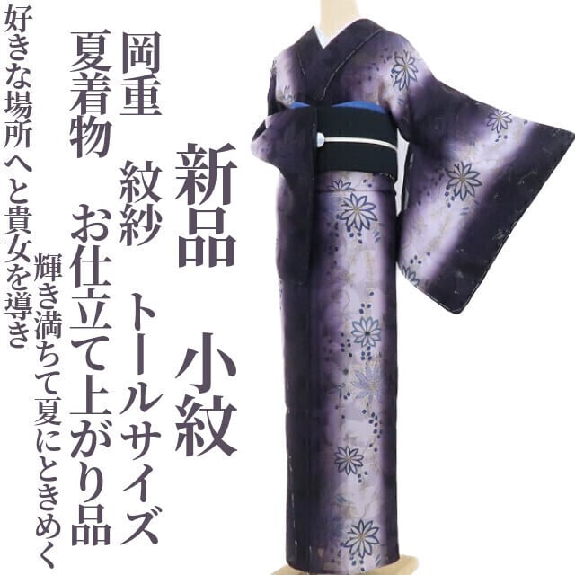 新品 岡重 紋紗 お仕立て上がり品“好きな場所へ貴女を導き輝き満ちて夏にときめく”夏着物 仕付け糸付 トールサイズ 小紋 3934