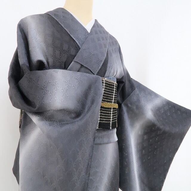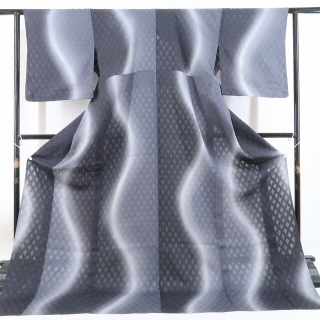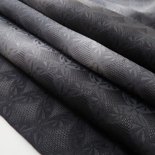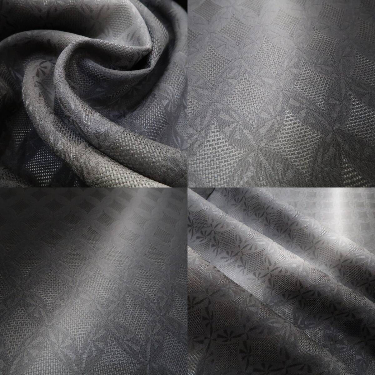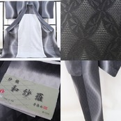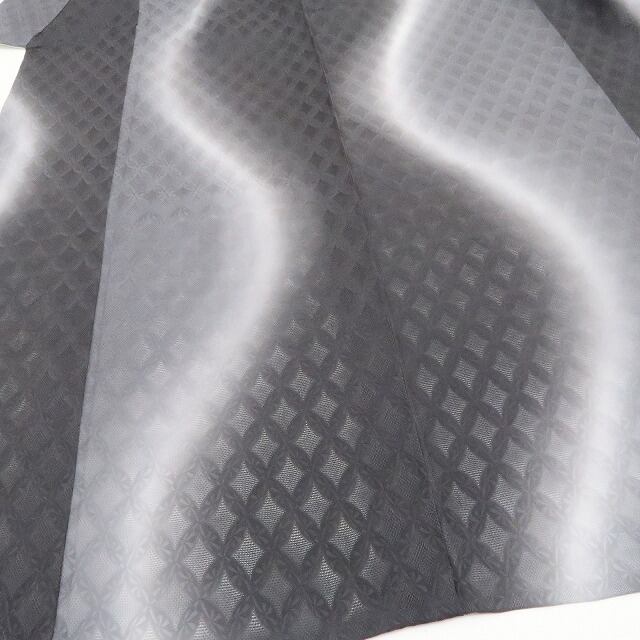 暈しの技が活きるグレーの濃淡に朧げな表情で浮かび上がる菱格子のデザインモチーフ、それは紗の透明感に巧みな意匠が創り出すこの上ない夏の涼味、爽やかな風とともに貴女の装いの満足度を上げてくれること間違いなし!