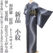 新品 和紗羅 紋紗 暈し 夏着物“古典仰いで和に習う今も昔も変わらぬ風情”仕付け糸付 お仕立て上がり品 トールサイズ 小紋 3935