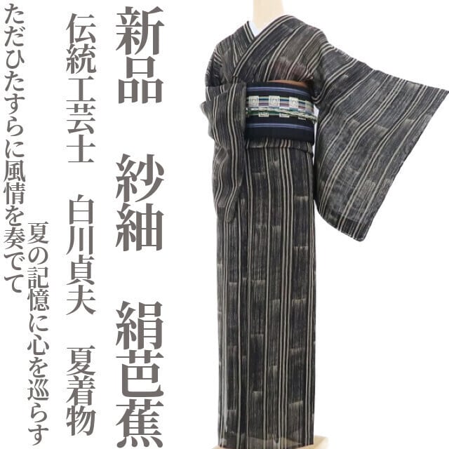 新品 紗紬 伝統工芸士 白川貞夫 夏着物“ただひたすらに風情を奏でて夏の記憶に心を巡らす”正絹 仕付け糸付 絹芭蕉 3981