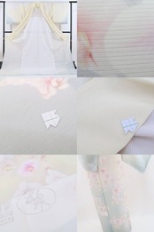 新品未使用・撮影の為だけに着付けた“仕付け糸付/手縫い仕立て”の一枚、お座りになられました時など薄手着物特有のよれを低減し、また下にお召になられましたものの透けを防止する効果を持つ居敷当て付の高級仕立てでございます。