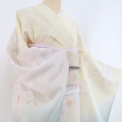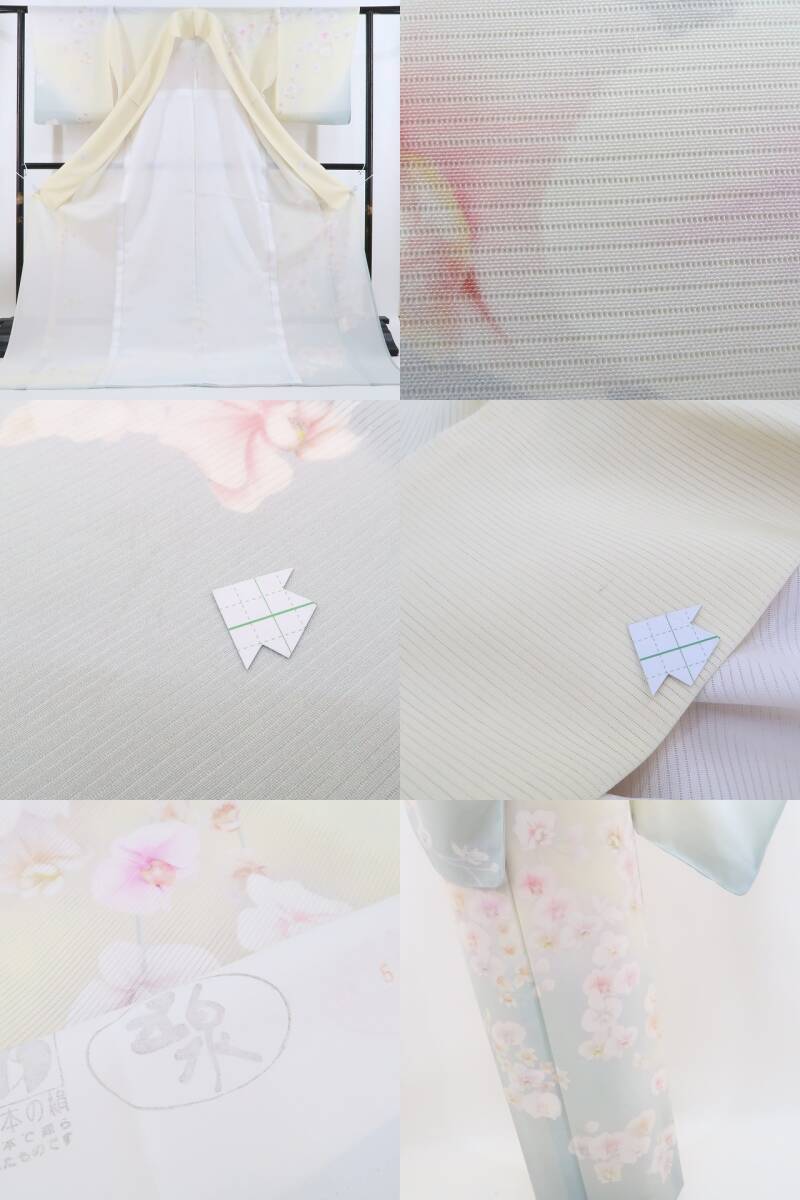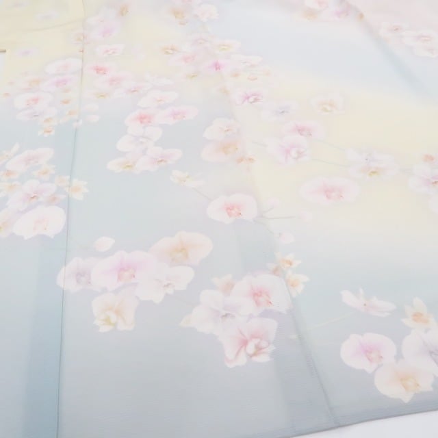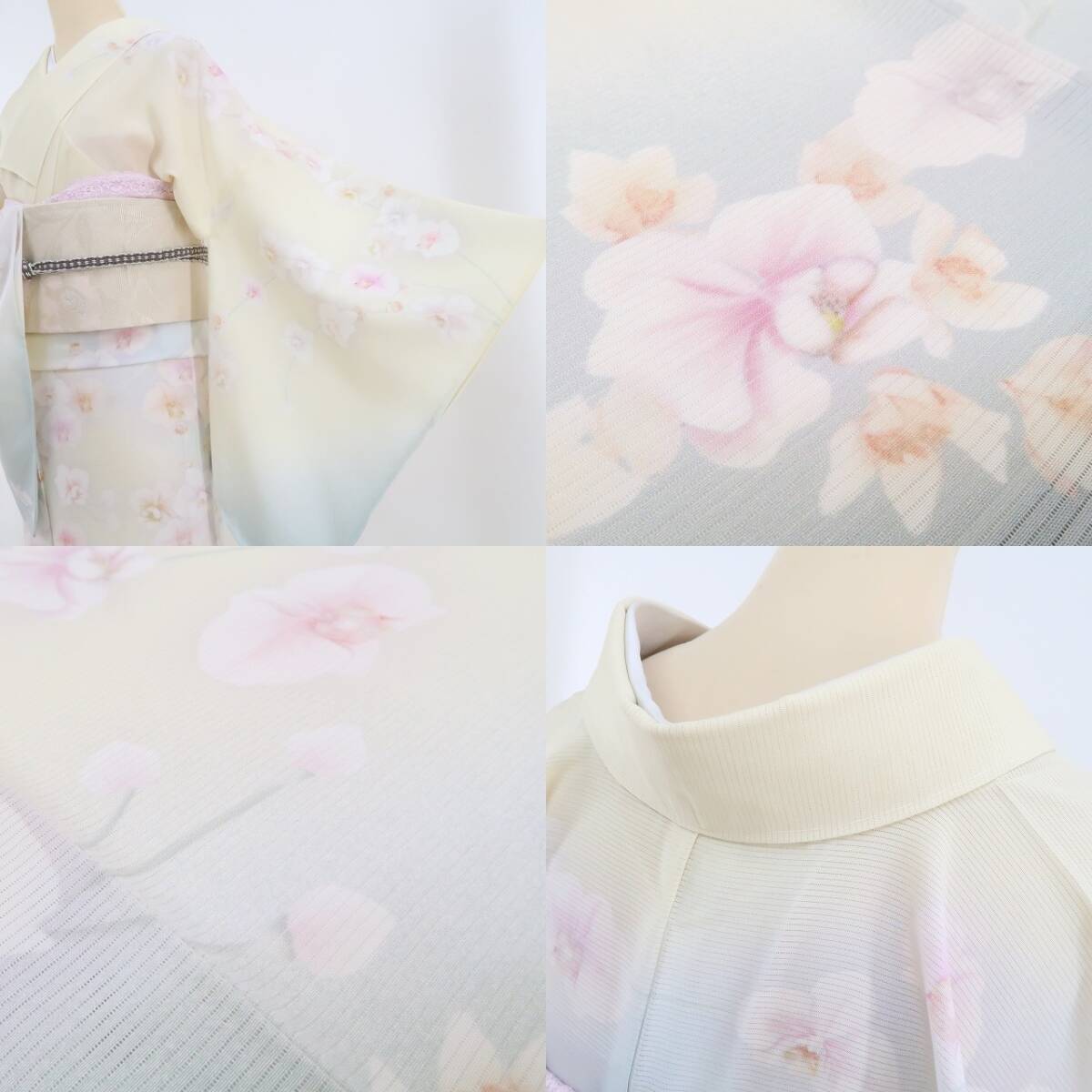 こちらのお着物は、ペールトーンの彩色で意匠の美しさにフォーカスしたデザイン性の高い胡蝶蘭の花を込めております。華やかなれども慎ましく上品に…大人のセンスを表現するのに最適なお召し物です。