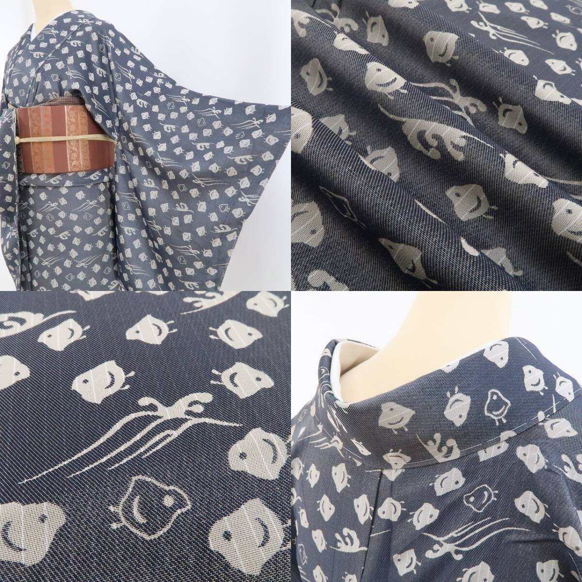 丸みある藍墨茶色の彩色全面を埋め尽くす愛らしい千鳥の艶小柄、滑らかな正絹の地に醸し出されるえも言われぬお洒落感は必見!それは正に貴女が主役の“和に照りそいし洒落ごころ”、ダイレクトにセンスの良さを感じさせてくれる一枚…お召独特のしっとりとした風合いが着物の味わいを一段と馴染みやすい趣に変えています。