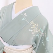 縦・横の糸の本数を減らして隙間を作り、風通しを良くした“絽”は、透ける部分が横縞になって表れる“絽目”が特徴で涼しげでさらりとした雰囲気、生地質を持ちます。7月、8月の盛夏に最適で、まだまだ気温の高い9月頃まで着られる薄物着物の代表格。