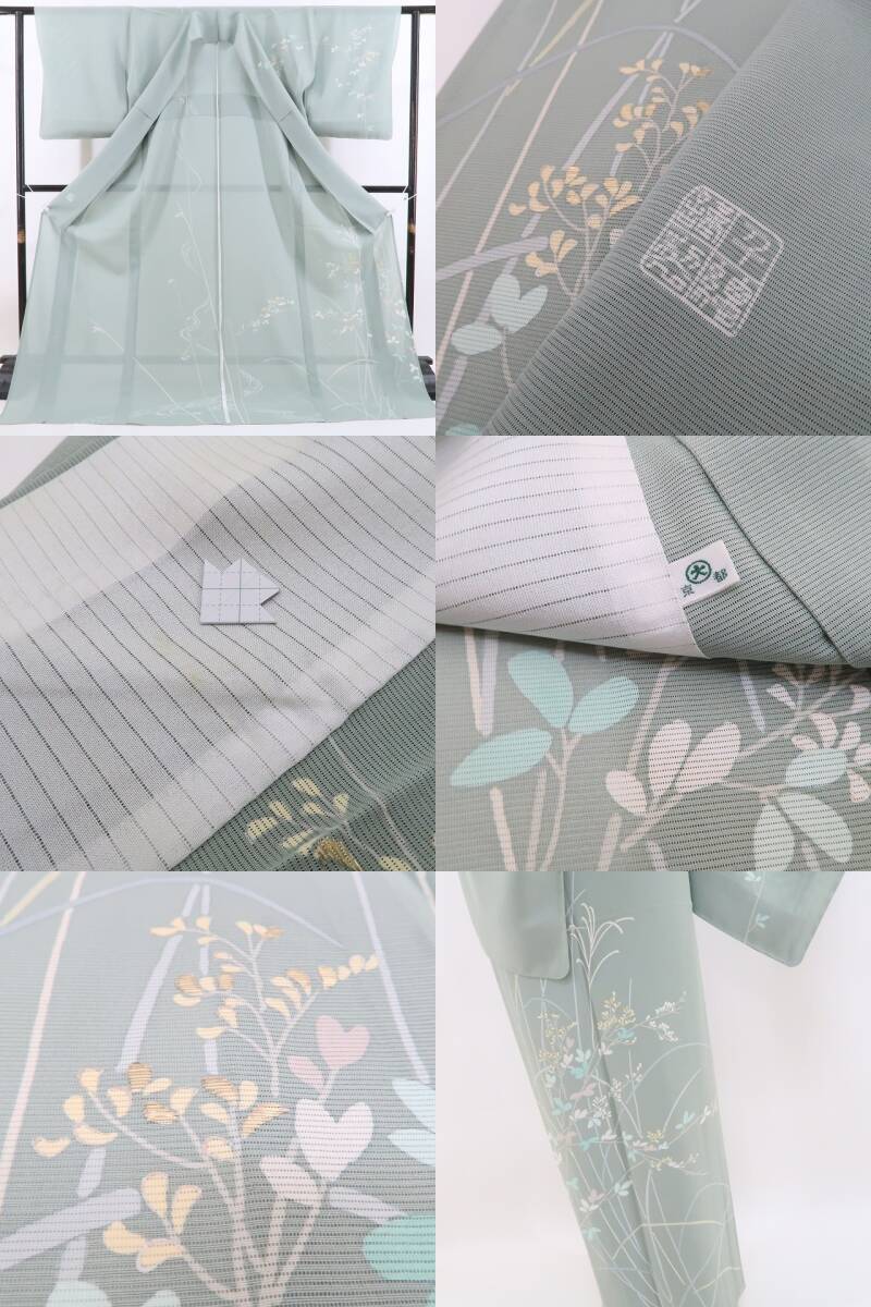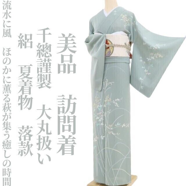 美品 千總謹製 大丸扱い 絽 夏着物 落款 正絹 仕付け糸付“流水に風、ほのかに薫る萩が集う癒しの時間”訪問着 4111