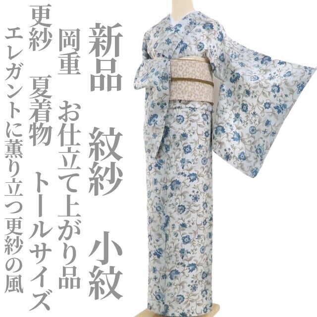 新品 岡重 紋紗 お仕立て上がり品 更紗 夏着物 仕付け糸付 トールサイズ“エレガントに薫り立つ更紗の風”小紋 4149