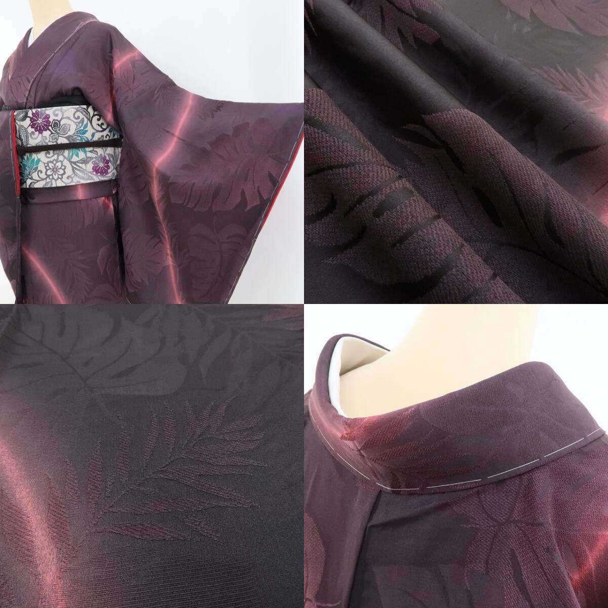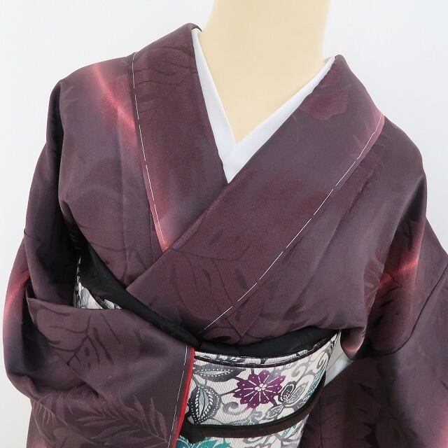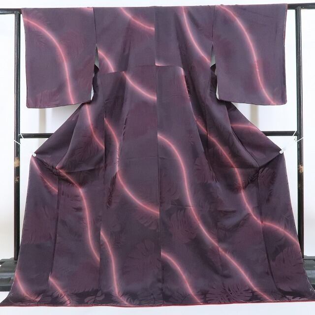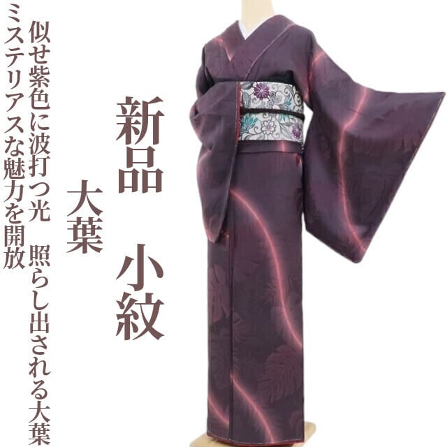 新品 大葉 着物 正絹 仕付け糸付“ミステリアスな魅力を開放...似せ紫色に波打つ光、照らし出される大葉”小紋 4204