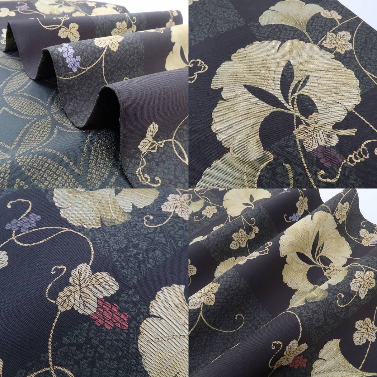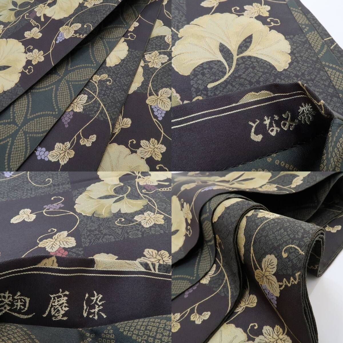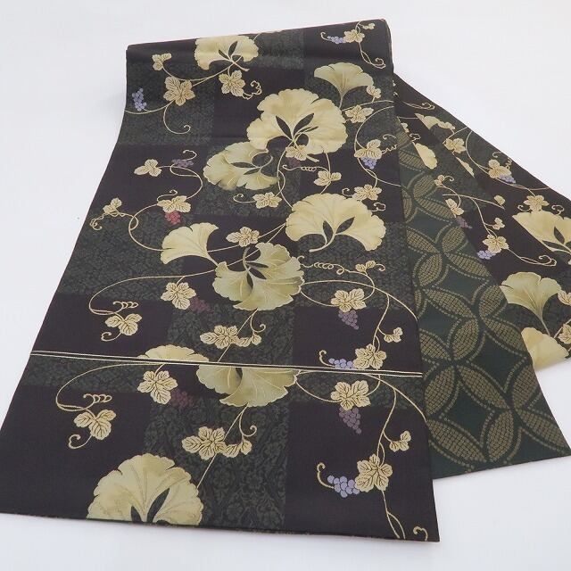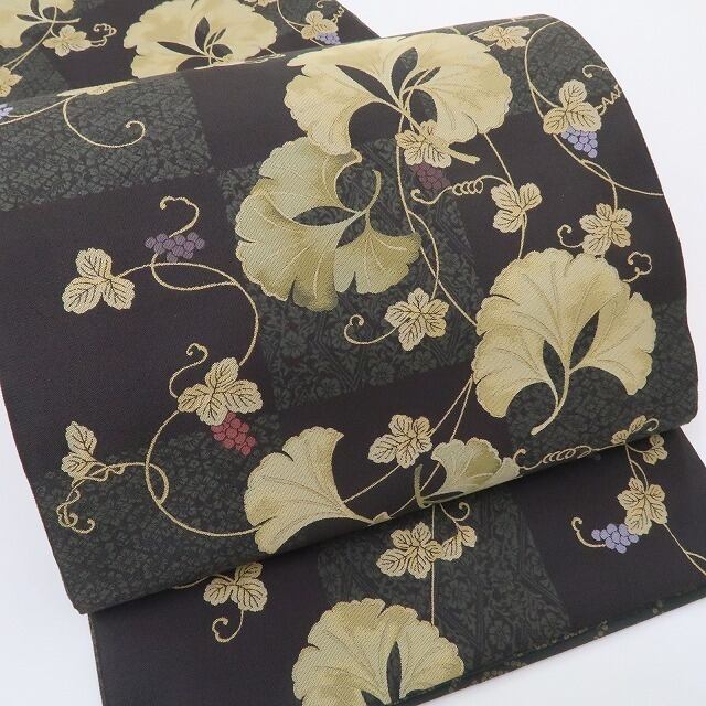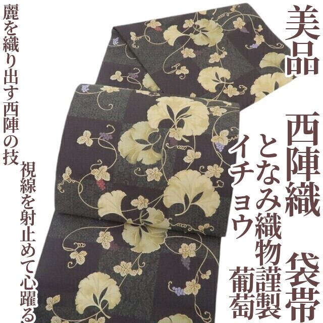 美品 となみ織物謹製 イチョウ 葡萄 着物“麗を織り出す西陣の技…視線を射止めて心躍る”正絹 西陣織 袋帯 4225