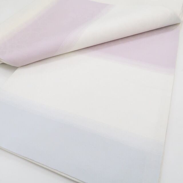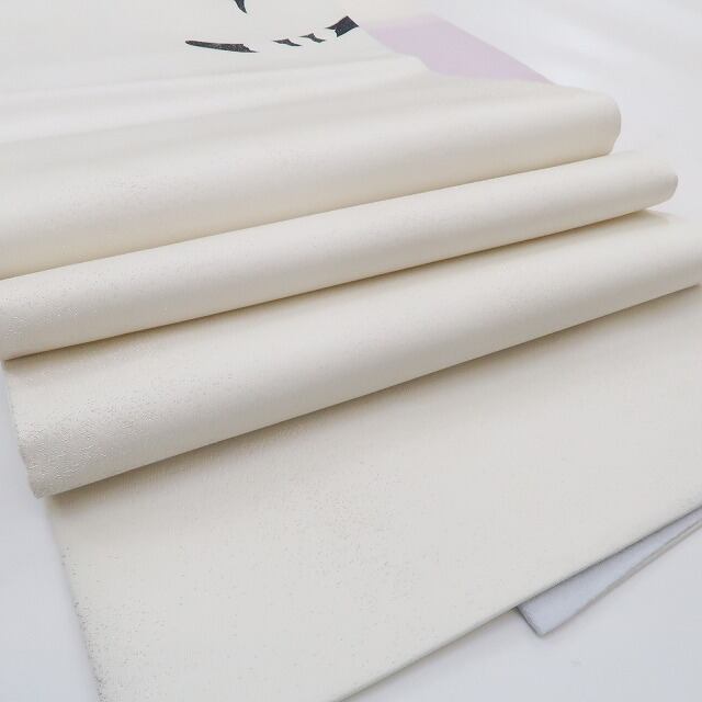 余計なものを持たずに八割れ柄に可愛いお鼻、エレガントな口ひげ、自慢のしっぽを揺らし、そっと目を閉じる姿が美しい輝きを放つ猫が現われ、その向こう側にも可愛い猫としっぽがちょこん...。裏面には優しい幻想を段々と広げてどこから見ても抜かりなく、センスある意匠を物語る“猫”で勝負する“銀通し”正絹袋帯でございます。