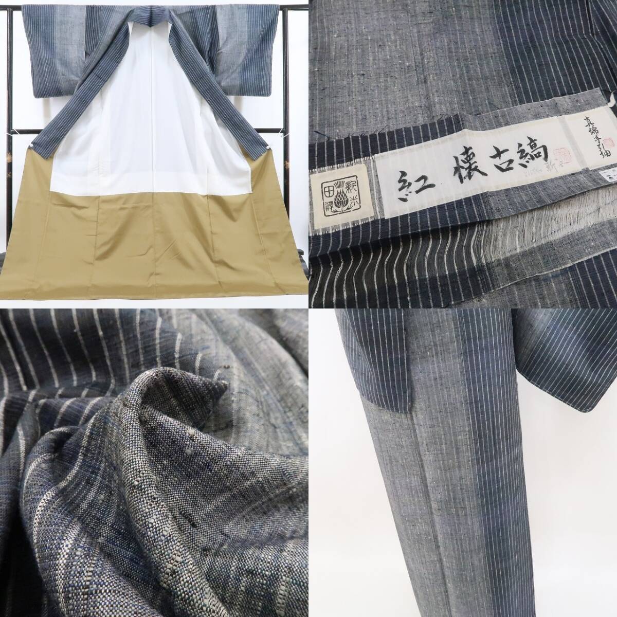 新品 米沢 新田 縦縞 着物“不変を紡ぐ手引の技…時代を超えて風情を奏でる”正絹 証紙付 仕付け糸付 真綿手引紬 4281